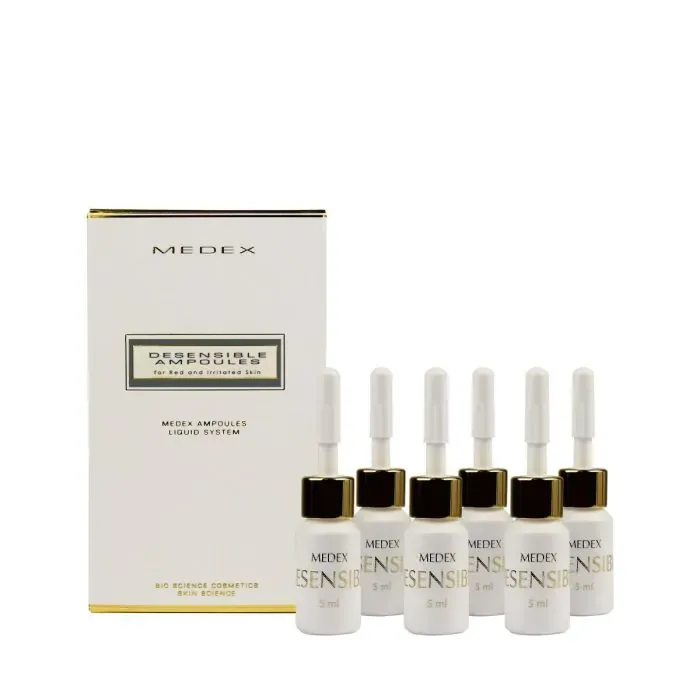 Medex Desensible Ampullen zijn ampullen voor de gevoelige, rode en geïrriteerde huid. Deze effectieve formule kalmeert de huid, versterkt haar en zorgt voor een zichtbare verbetering. De doorbloeding wordt gestimuleerd en de huid ziet er gezonder uit. Voor een rustige, vitale huid!