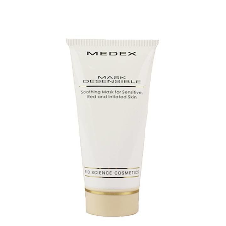 Medex Mask Desensible is een kalmerend masker voor de gevoelige, rode en/of geïrriteerde huid, eventueel met zichtbare adertjes. Dit masker heeft een voedende, verfrissende, zuiverende en kalmerende werking. Ook helpt het de elasticiteit van de huid te verbeteren. Voor een rustige en gevoede huid.