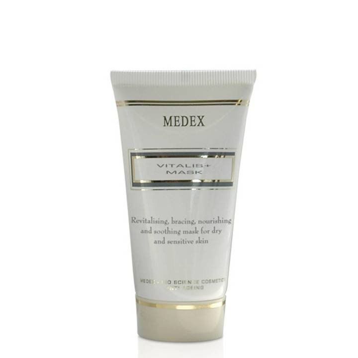 Medex Vitalis+ Mask is een revitaliserend masker voor de droge en/of gevoelige huid. Deze formule voedt de huid, voorkomt uitdroging en helpt de vochtbalans te behouden. Ook stimuleert het de aanmaak van nieuwe huidcellen en het kalmeert de huid. Voor een gevoede, elastische en rustige huid.